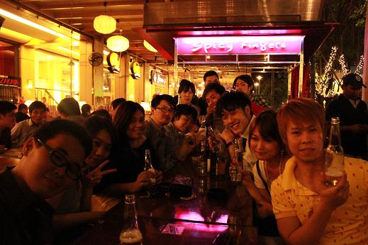 今日の飲み会は先生も参加。気づくとテーブルはサンミーゲルライトが埋め尽くして
